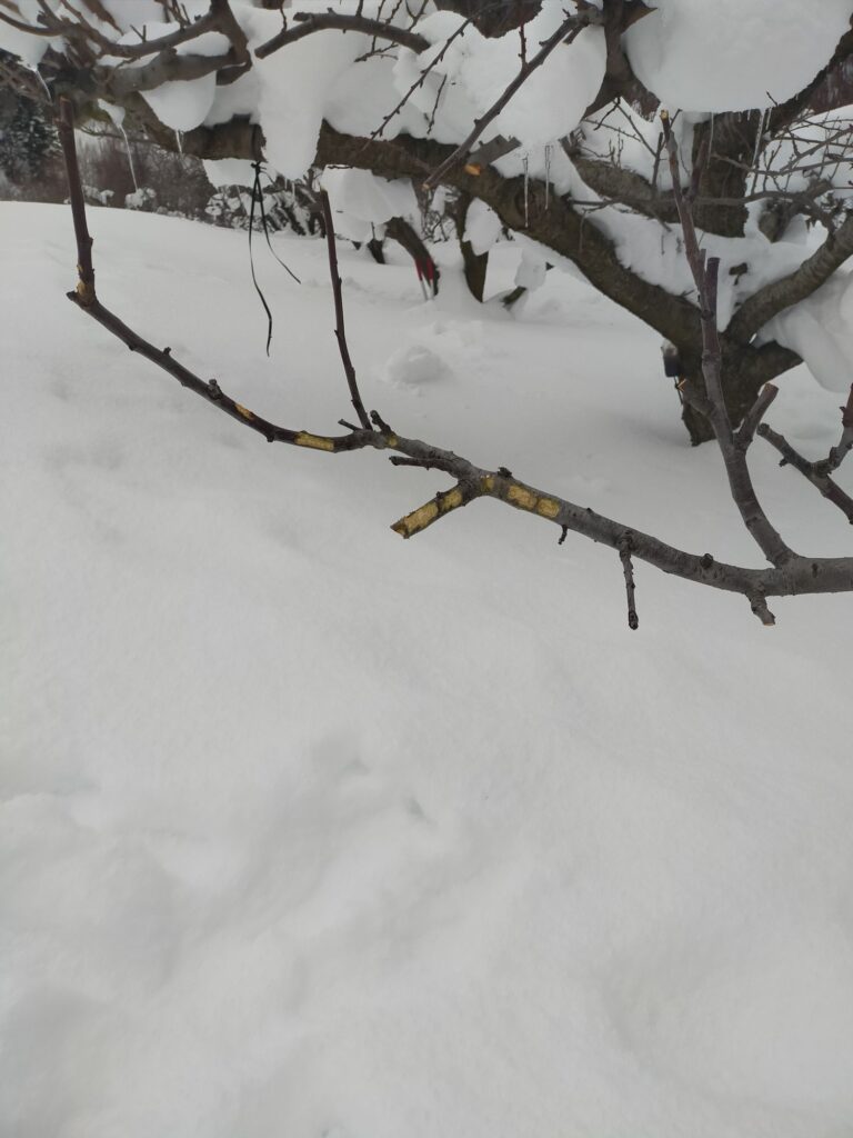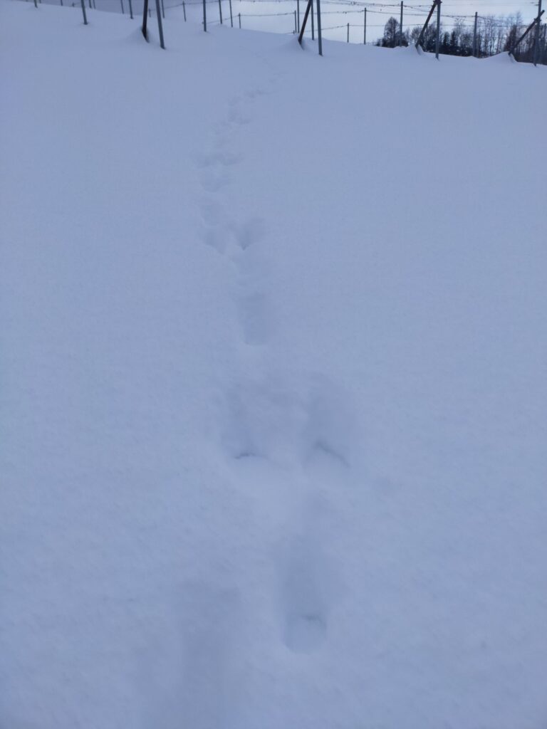 冬の畑では足跡で動物の気配を感じます